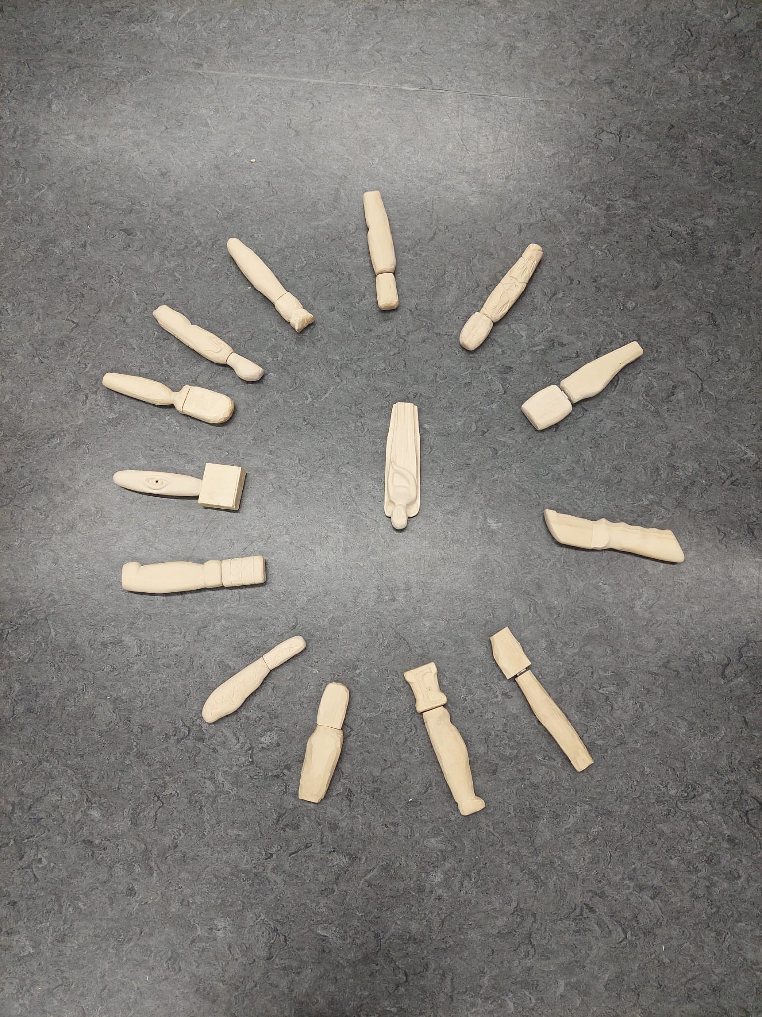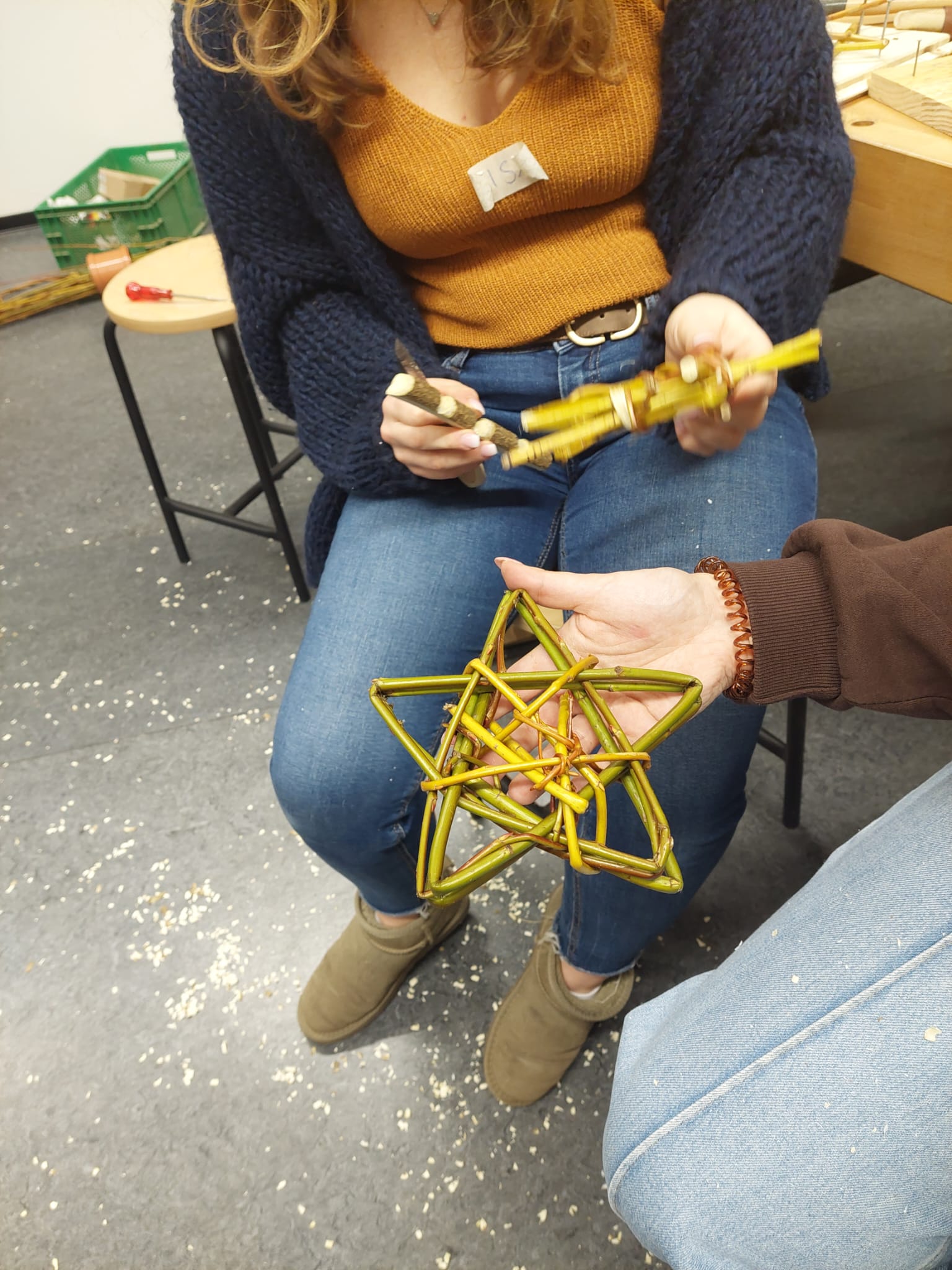 Besonders geübt wurden elementare Handschnitztechniken und das anfängliche Weidenflechten.